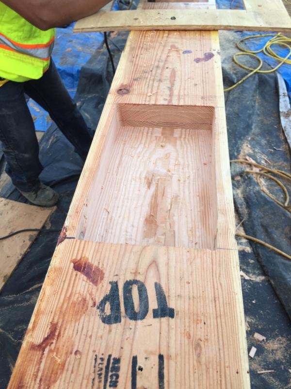 A.L. Vineyard Construction in Laguna Hills, California had a project that required thousands of 2" to 4" deep splines in glulam timbers like the ones seen in these photos. Each spline was taking well over an hour to complete using a router. Andy discussed his project at length with Timberwolf Tools, and we decided that the fastest way to speed up his project would be the Mafell LS 103Ec Chain Mortiser with a 2.0" chain (to hog out as much wood as possible) and a powerful 240V motor (so that he could cut his amps drawn in half).