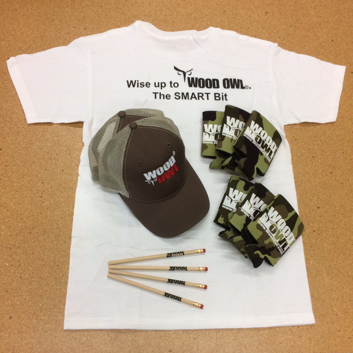 We recently received over 300 of the Most Popular Ultra-Smooth Auger Bit from Japan after WoodOwl had been out of stock a few months due to overwhelming demand. In appreciation of everyone's patience, WoodOwl has given us some free T-shirts, hats, coozies and pencils to give out (see photo below). Just remind us which freebie you want next time you place a WoodOwl order.